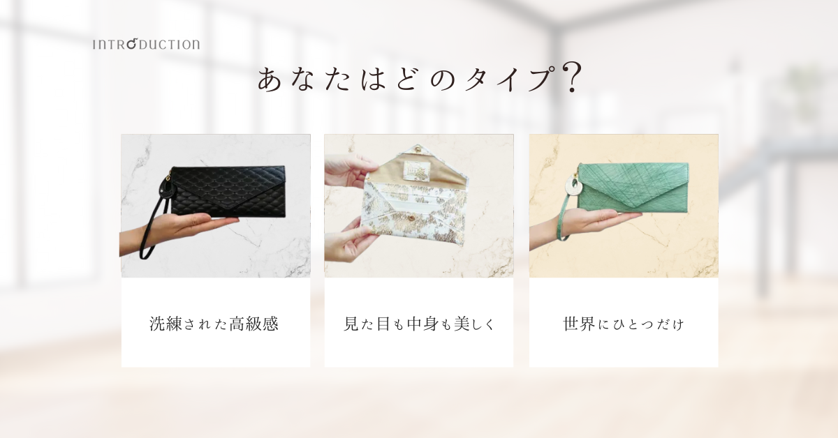 ![]() 2025秋冬新作コレクション! | ![]() 今だけの出会い、二度と手に入らない特別を! | ![]() あなたのライフスタイルに合ったお財布は!? |