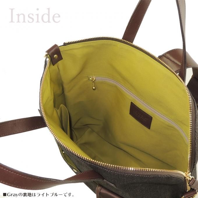 素材 : ポリエステル×ナイロン×牛革(持ち手),綿(裏地)