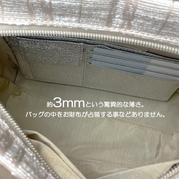 ![]() | ちょっとしたお出かけや旅先などでも大活躍 整理整頓はお部屋や洋服だけじゃない。お財布だってスマートにしたい!そんなあなたにピッタリの薄さ3mmの極薄長財布です。ちょっとしたお出かけはもちろん、旅行の時などに非常に便利です。キャッシュレス化が進んでいる昨今、メイン財布から最低限のカードと現金をこのお財布に入れて観光すれば身軽で安心です。 |