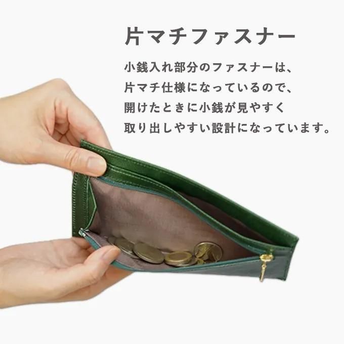 | ▼スタッフのコメント こちらのお財布はとにかく極薄で極軽です。奥行もまさかの3mm。もちろんカードや小銭を入れる事で多少の膨らみは出ますが、それでもここまで薄いお財布は他のブランド様でも出会った事がございません。重さも約60gと極軽。その為、バッグの中でかさばる事もなく、持ち運びも楽々。キャッシュレス化が進む現代では大活躍するお財布と言えます。また、これだけ薄くて軽いお財布の場合、本来であればカード入れであったり小銭入れであったり何かの機能は諦めなければなかなか実現できない程、究極に削ぎ落されたデザインのはずが、こちらはお札入れ・小銭入れ・カード収納、そしてフリースペースまで備わっており、お財布としての機能を全て網羅したうえでこの薄さと軽さという究極に突き詰められたデザインとなっています。そして素材は全てが国内産のものを使用し、職人が一つひとつ丁寧に真心込めて創っておりますので、末永くご愛用いただけるクオリティ(品質)となっております。シンプルかつ普遍的で飽きのこないデザインですので、女性の方はもちろん、男性でも末永くご愛用いただけます。本革最大の特徴でもある経年変化などもお楽しみいただけますので、ぜひお財布を育てていっていただき、本革の美しい移ろいを感じていただきつつ愛着を深め、お客様にとって唯一無二のパートナーとして大活躍してくれるはずです。 |