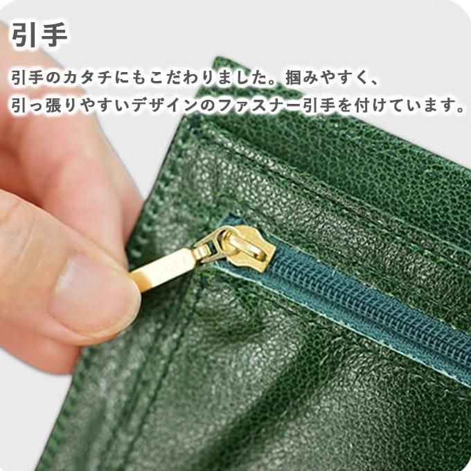 | 引手のカタチにもこだわりました。 掴みやすく、引っ張りやすい デザインのファスナー引手を付けています。 | お財布自体が非常に上品で柔らかいため、 横幅約20cmのバッグには すっぽり収める事ができます。 その為、バックと一体化させて お財布ショルダーとしてお使いいただけます。 |