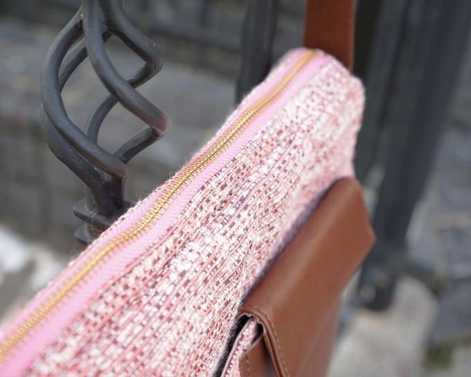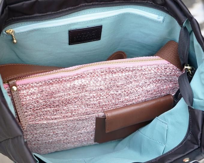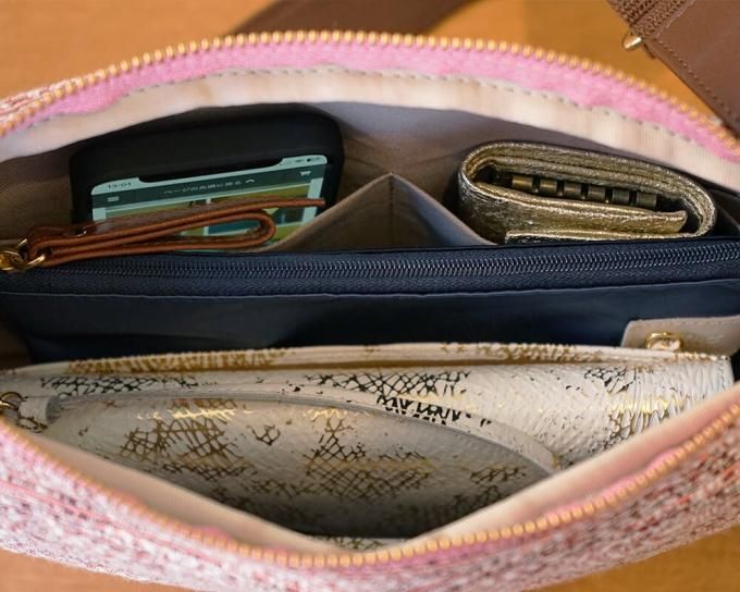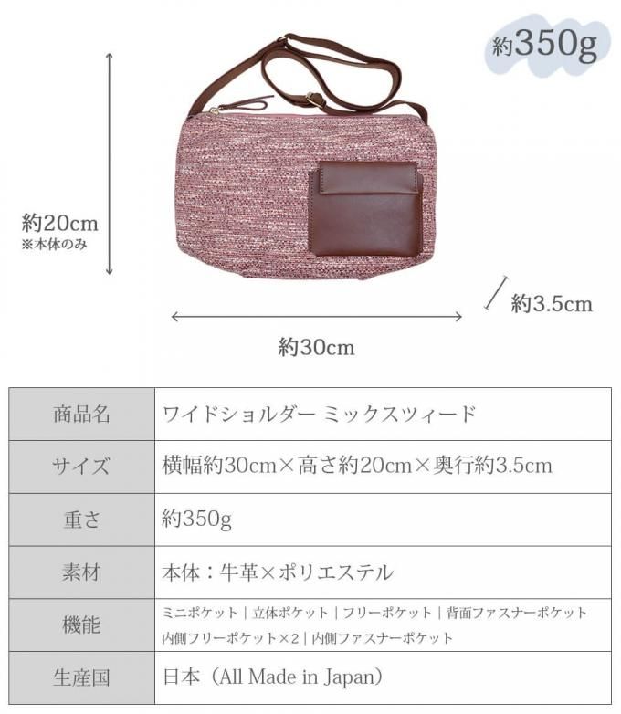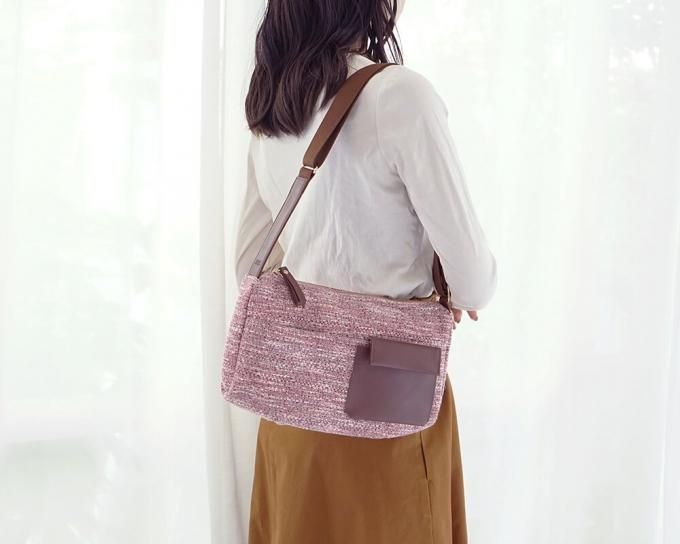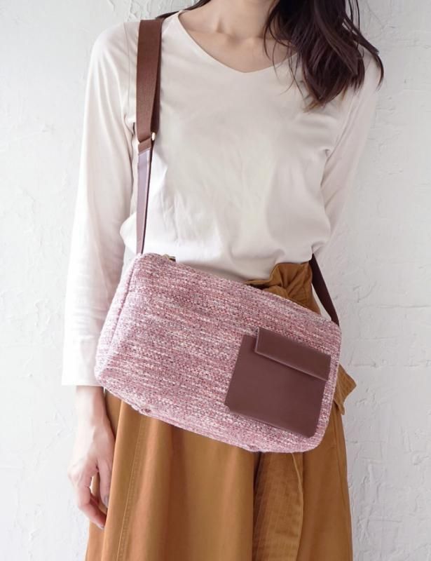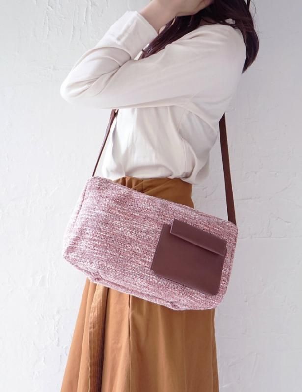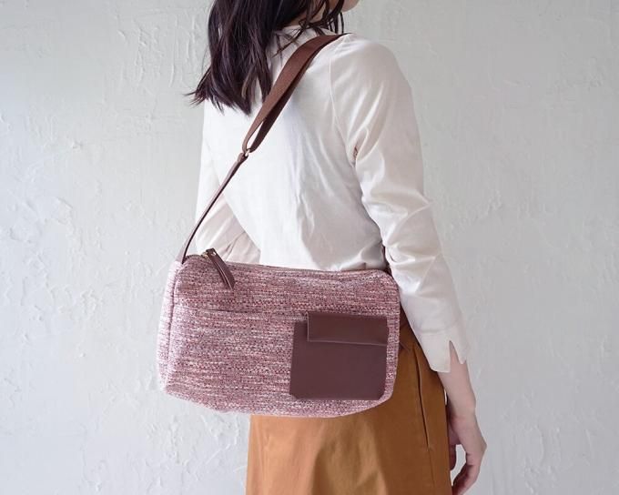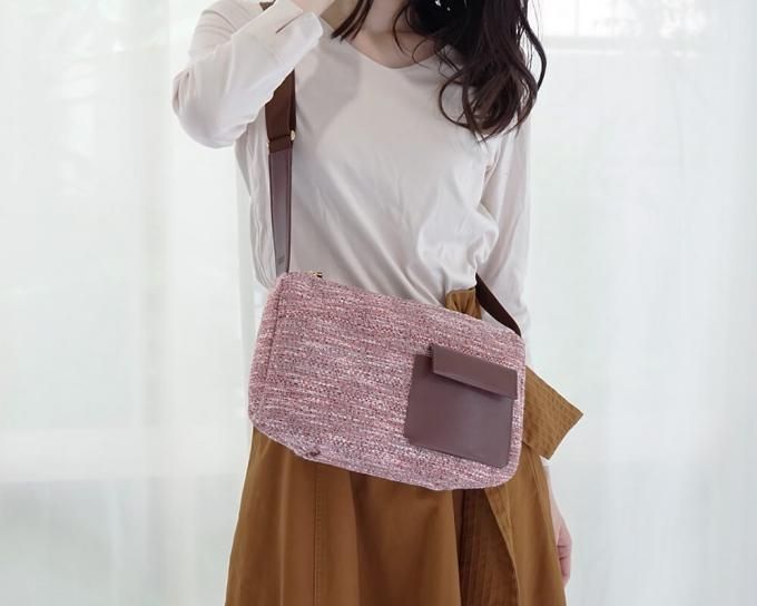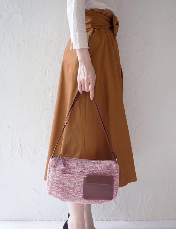 | 上品なポイントカラーのミックスツィード風生地を扱いやすく、大人可愛いデザインに。持ち歩きやすくて必要最低限のモノを収納しやすいサイズ感は、ひとつは持っておきたい便利さがあります。 |