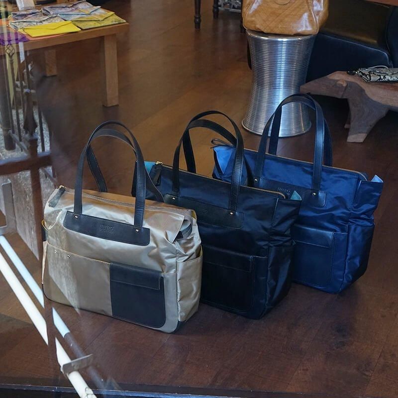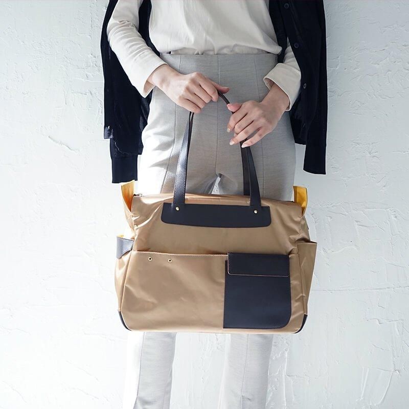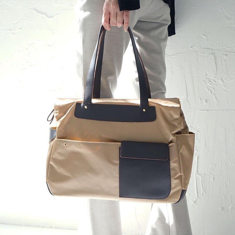 イントロダクションのナイロン(エアリー)シリーズで使用しているナイロン地は、糸の撚りの強い66ナイロンという生地を使用しており、発色が美しく、きめ細かく、コシのある気品高いナイロン素材です。汚れてもサッと拭いていただくだけで、大丈夫!雨や摩擦にも強いので、丈夫でタフ。雨の日などは、より撥水対策として防水スプレーの使用も可能です。